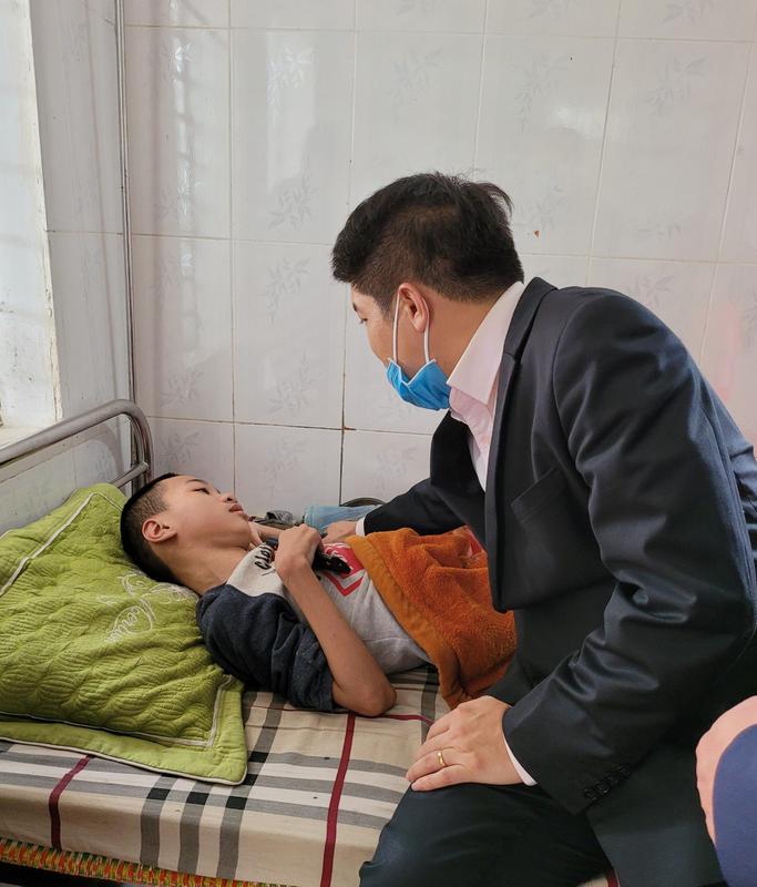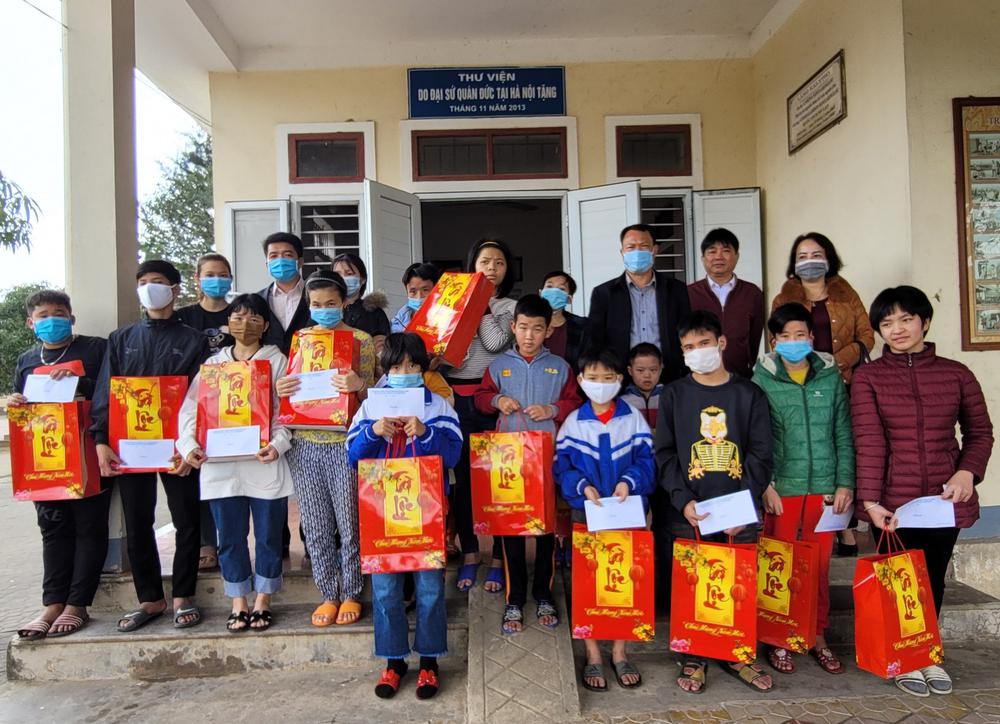 Chủ tịch Ủy ban MTTQ tỉnh Trần Nhật Tân chúc các em nhỏ tại Làng Trẻ em mồ côi Hà Tĩnh (SOS) mạnh khoẻ, ngoan ngoãn; chúc cán bộ, nhân viên và các cháu đón một mùa xuân ấm áp, tươi vui.