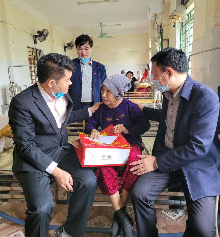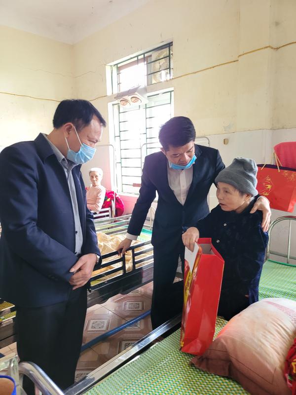 Tại đây, Đoàn đã đến thăm hỏi và tặng quà các cụ tại Trung tâm Điều dưỡng người có công và Bảo trợ xã hội. Thay mặt cho Đoàn, đồng chí Chủ tịch Ủy ban MTTQ tỉnh Trần Nhật Tân đã thăm hỏi ân cần, chúc các cụ sống lâu, sống khoẻ và đón Tết Tân Sửu đầm ấm, hạnh phúc trong sự chăm lo, chia sẻ của các cấp chính quyền và cộng đồng. Chia sẻ với những vất vả của cán bộ, nhân viên đang làm việc tại Trung tâm, Chủ tịch Ủy ban MTTQ tỉnh mong muốn các cán bộ, nhân viên nỗ lực vượt khó, đảm bảo cho đối tượng chính sách, người già đón Tết vui vẻ, đầm ấm.