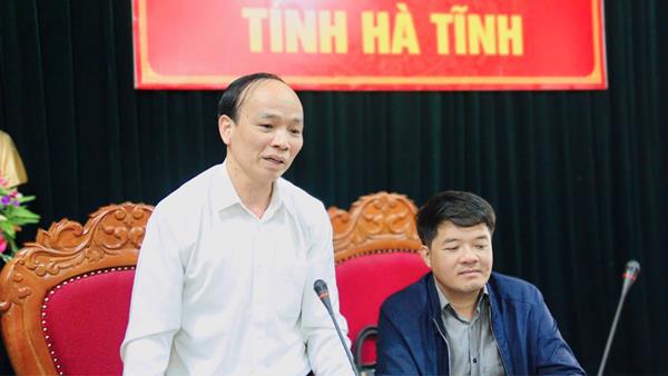 Đồng chí Hồ Thái Sơn, Phó chủ tịch UBND huyện Hương Sơn báo cáo về tiến độ xây nhà ở trên địa bàn huyện