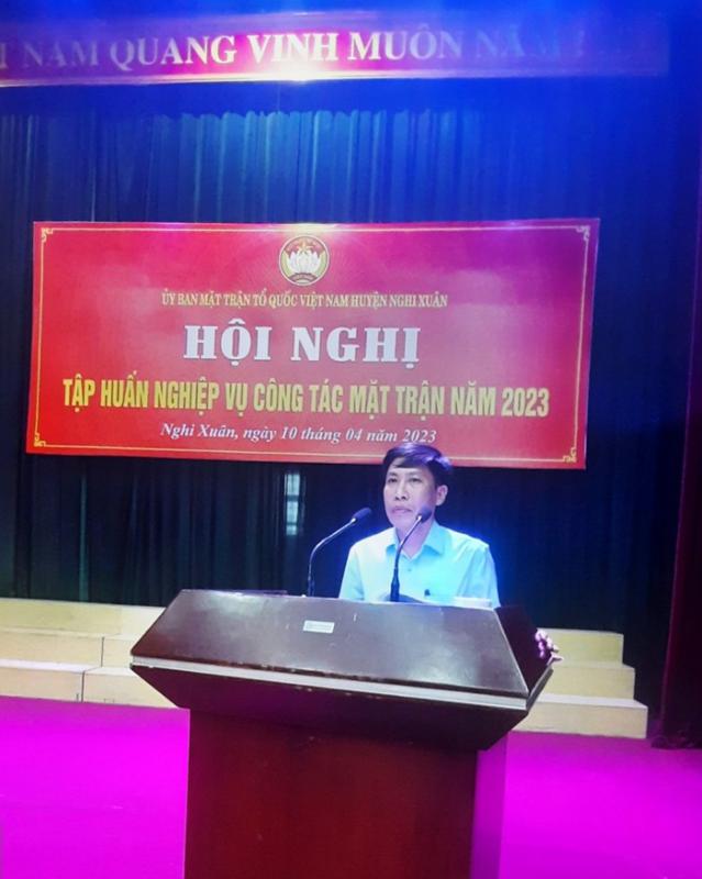 Trong thời gian 01 ngày (10/4/2023), Ủy ban MTTQ huyện Nghi Xuân tổ chức Hội nghị tập huấn nghiệp vụ công tác Mặt trận năm 2023. Tham dự Hội nghị có 195 đại biểu là Chủ tịch, Phó Chủ tịch Ủy ban MTTQ các xã, thị trấn; trưởng Ban Thanh tra nhân dân, Ban Giám sát đầu tư của cộng đồng và trưởng Ban công tác Mặt trận thôn, tổ dân phố.