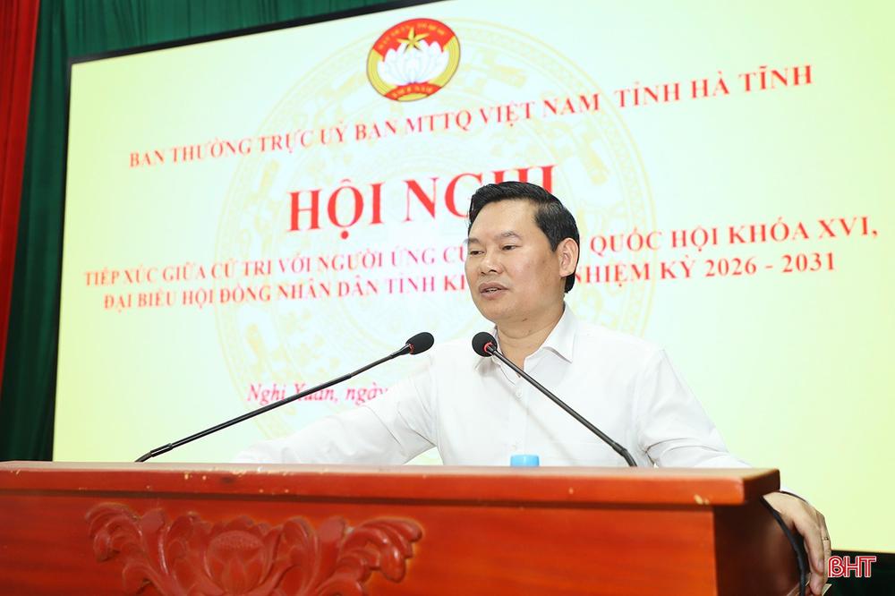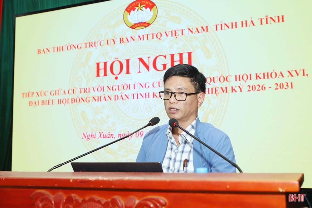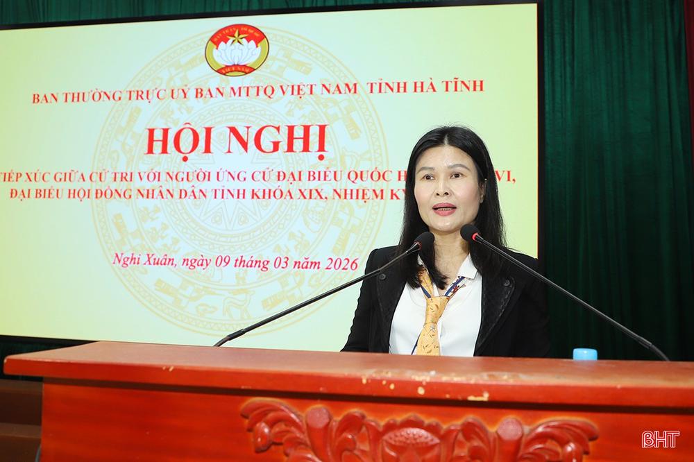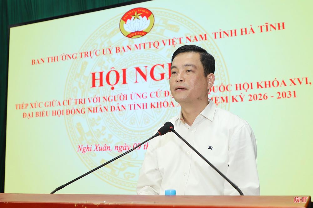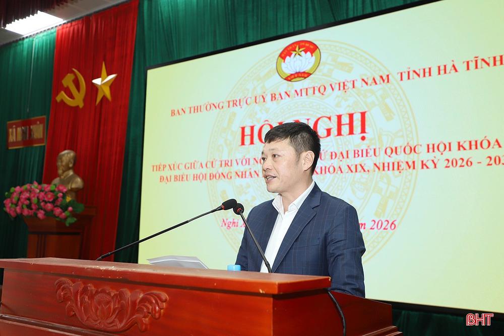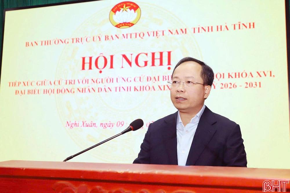 Sáng 9/3, tại xã Nghi Xuân, Ban Thường trực Ủy ban MTTQ tỉnh tổ chức hội nghị tiếp xúc cử tri của những người ứng cử ĐBQH khóa XVI và đại biểu HĐND tỉnh khóa XIX, nhiệm kỳ 2026 - 2031 tại đơn vị bầu cử đại biểu Quốc hội số 2 và đơn vị bầu cử HĐND tỉnh số 8.