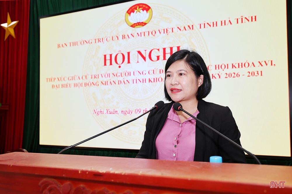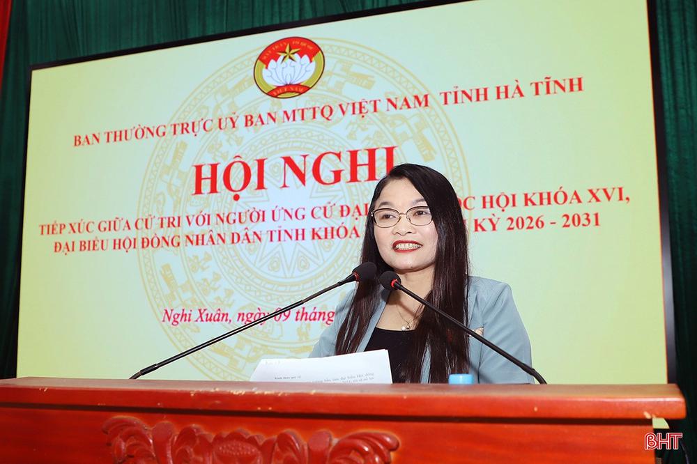Các ứng viên cũng cam kết sẽ quan tâm đề xuất các chính sách liên quan đến khai thác lợi thế của địa phương để phát triển nông nghiệp, thương mại - dịch vụ, công nghiệp; khai thác giá trị văn hóa quê hương Đại thi hào Nguyễn Du gắn với phát triển du lịch; thu hút đầu tư vào địa bàn, đặc biệt là tại khu công nghiệp Gia Lách; quan tâm vấn đề bình đẳng giới, đảm bảo an sinh xã hội, hỗ trợ vốn, giải quyết việc làm cho lao động, đặc biệt là lao động trẻ…