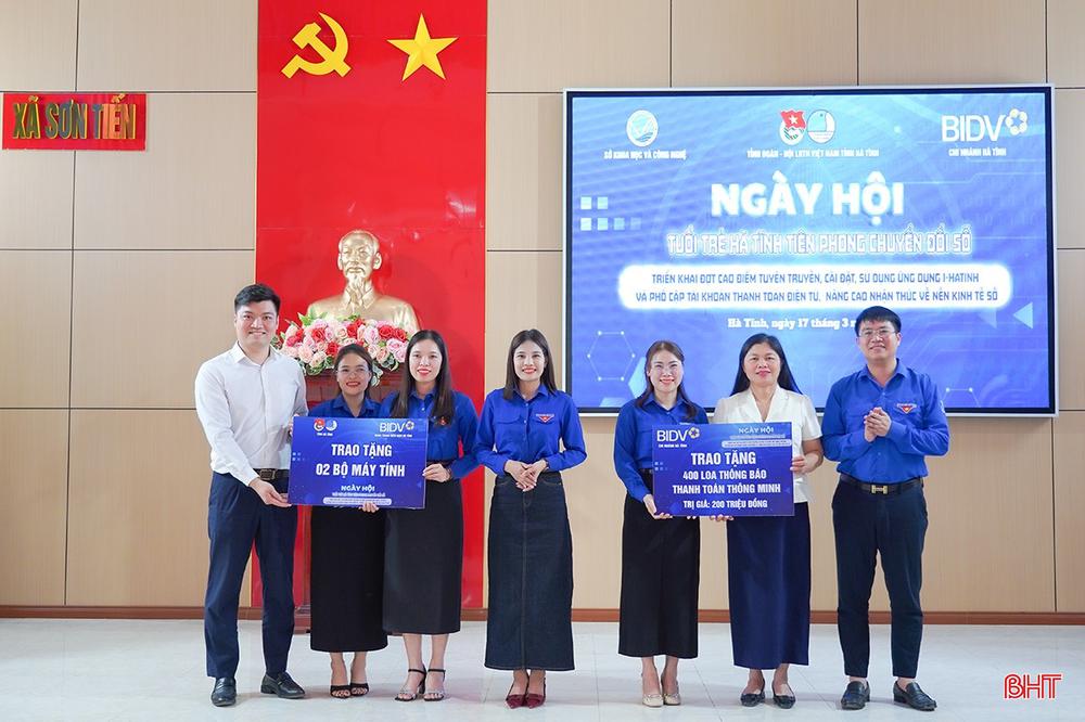 Chiều 17/3, Tỉnh đoàn Hà Tĩnh phối hợp Sở Khoa học và Công nghệ và BIDV Chi nhánh Hà Tĩnh tổ chức ngày hội "Tuổi trẻ Hà Tĩnh tiên phong chuyển đổi số" tại UBND xã Sơn Tiến.