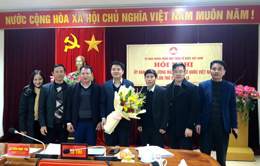 Các đồng chí trong Ban Thường trực Uỷ ban MTTQ tỉnh Hà Tĩnh tặng hoa chúc mừng đồng chí Trần Nhật Tân được Hội ngị hiệp thương tham gia uỷ viên Uỷ ban Trung ương MTTQ Việt Nam khoá IX .