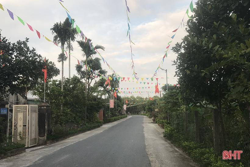 Tuyến đường được trang trí cờ hoa chào đón Ngày hội Đại đoàn kết toàn dân tộc năm 2022 tại xã Cẩm Duệ.