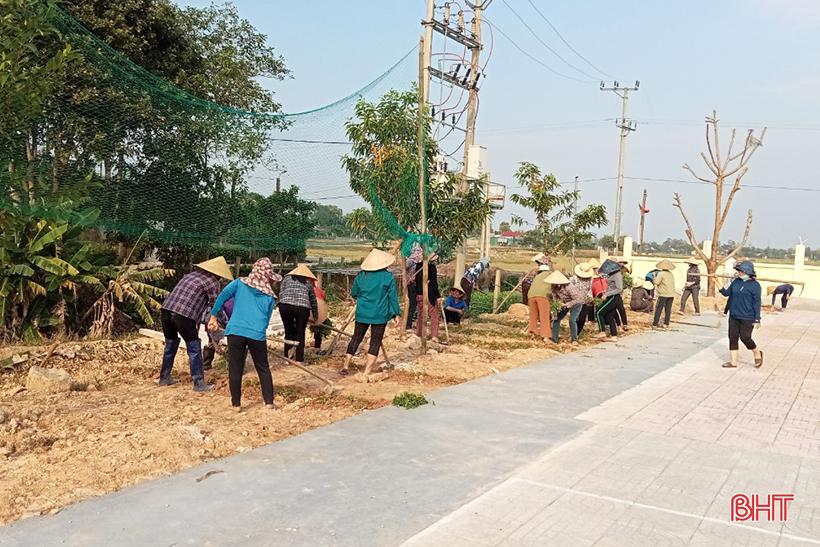 Người dân thôn Thống Nhất (xã Cẩm Duệ) dọn dẹp để chuẩn bị cho ngày khánh thành nhà văn hóa cộng đồng và tổ chức Ngày hội Đại đoàn kết toàn dân tộc năm 2022.