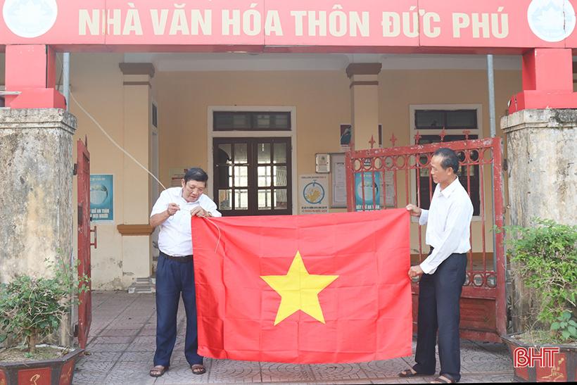 Người dân thôn Đức Phú (xã Thạch Trung) treo cờ Tổ quốc mừng Ngày hội Đại đoàn kết toàn dân tộc năm 2022.