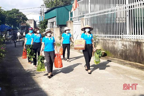 Chị em phụ nữ thị xã Kỳ Anh đi chợ giúp các gia đình bị cách ly.