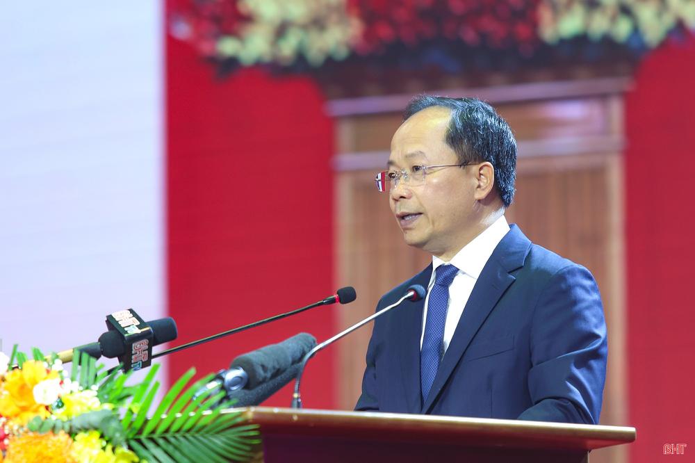 Tập trung xây dựng Đảng và hệ thống chính trị trong sạch, vững mạnh; quyết liệt thực hiện mục tiêu tăng trưởng trên 10% gắn với xác lập mô hình tăng trưởng mới dựa trên khoa học, công nghệ, đổi mới sáng tạo và chuyển đổi số; phát huy mạnh mẽ giá trị văn hóa và con người Hà Tĩnh; không ngừng nâng cao đời sống vật chất, tinh thần của Nhân dân, đưa tỉnh nhà phát triển nhanh và bền vững; góp phần cùng cả nước từng bước hiện thực hóa mục tiêu “xây dựng nước Việt Nam hòa bình, độc lập, dân chủ, giàu mạnh, phồn vinh, văn minh, hạnh phúc, vững bước đi lên chủ nghĩa xã hội” như tư tưởng chỉ đạo của đồng chí Tô Lâm - Tổng Bí thư, Chủ tịch nước.