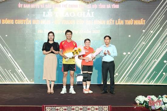 Giải cầu thủ xuất sắc nhất thuộc về VĐV Trần Diệu Thúy (huyện Kỳ Anh) và Nguyễn Văn Hải (huyện Hương Sơn). Ảnh: Báo Hà Tĩnh