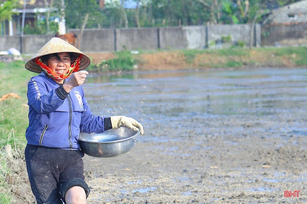 Nông dân Hà Tĩnh làm đất, xuống giống sản xuất vụ lúa xuân.