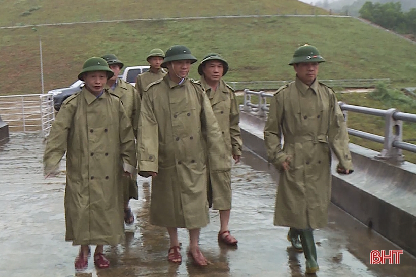 Bí thư Tỉnh ủy cùng đoàn cũng đã đến kiểm tra, nắm tình hình công tác vận hành, xả lũ tại công trình đầu mối hồ chứa nước Ngàn Trươi và tình hình sạt lở bờ sông Ngàn Sâu đoạn qua Trường Tiểu học xã Hương Minh, huyện Vũ Quang.