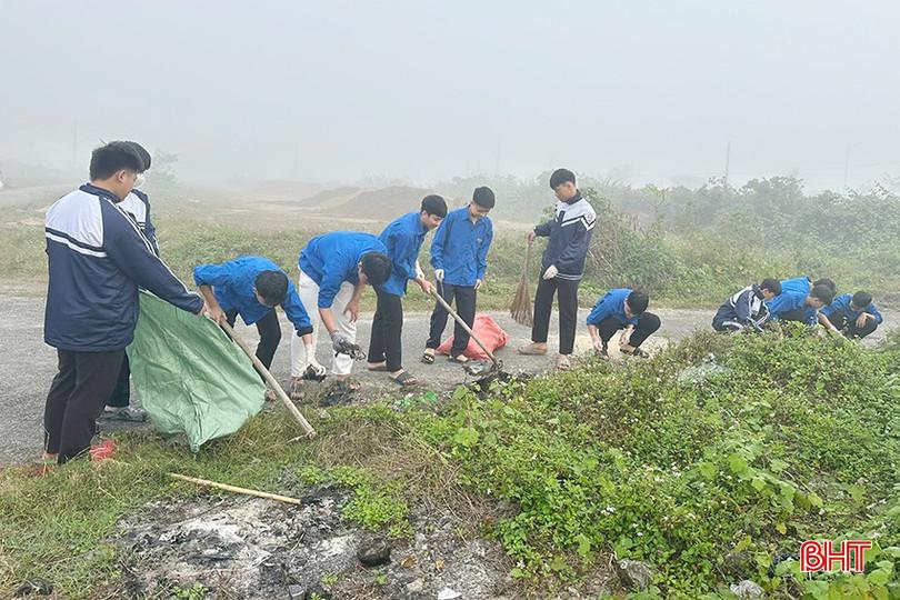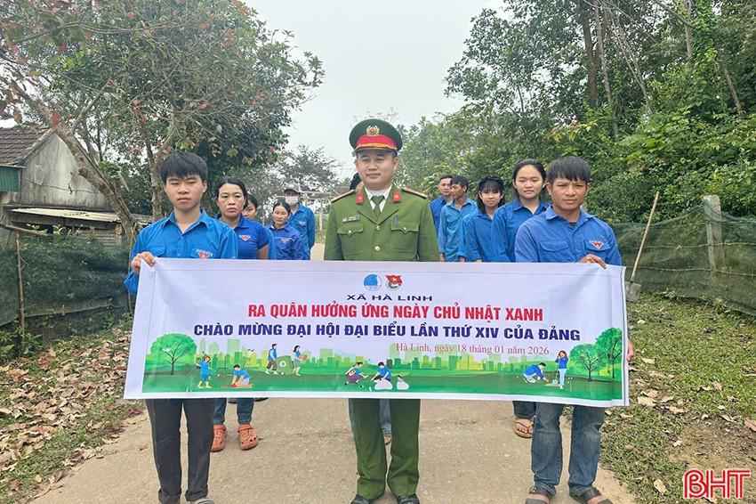 Thông qua Ngày Chủ nhật xanh toàn quốc, các cấp bộ Đoàn trong tỉnh đã phát huy tinh thần xung kích, tình nguyện, sáng tạo của ĐVTN trong tham gia bảo vệ môi trường, xây dựng khu dân cư sáng - xanh - sạch - đẹp. Đây không chỉ là hoạt động thường xuyên, thiết thực mà còn là hành động cụ thể, ý nghĩa của tuổi trẻ Hà Tĩnh, góp phần tạo khí thế thi đua sôi nổi, lập thành tích chào mừng Đại hội Đảng toàn quốc lần thứ XIV. Trong ảnh: Đoàn xã Hà Linh ra quân hưởng ứng Ngày Chủ nhật xanh toàn quốc.
