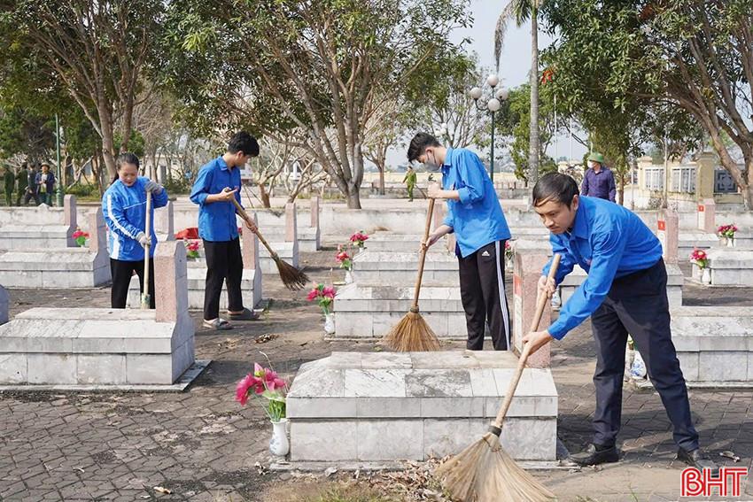 ĐVTN xã Tiên Điền ra quân vệ sinh môi trường tại nghĩa trang liệt sỹ, các trục đường ven biển Xuân Thành, chào mừng Đại hội Đảng toàn quốc lần thứ XIV.