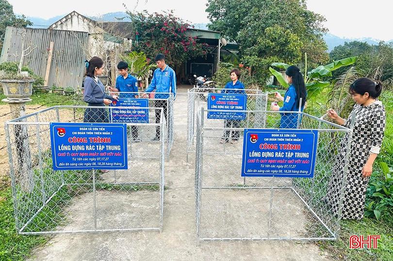 Đoàn xã Sơn Tiến trao tặng công trình "Lồng đựng rác tập trung" cho các khu dân cư trên địa bàn.