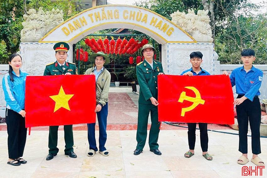 Theo đó, gần 5.000 đoàn viên, thanh niên (ĐVTN) đã tích cực tham gia triển khai hàng loạt công trình, phần việc và hoạt động thiết thực, phù hợp với điều kiện thực tiễn của từng địa phương. Trong ảnh: Đoàn phường Bắc Hồng Lĩnh trao tặng cờ Tổ quốc, cờ Đảng tại các địa chỉ văn hoá, di tích trên địa bàn và ra mắt công trình "Bức tường thanh niên" tại Trường THPT Hồng Lĩnh.