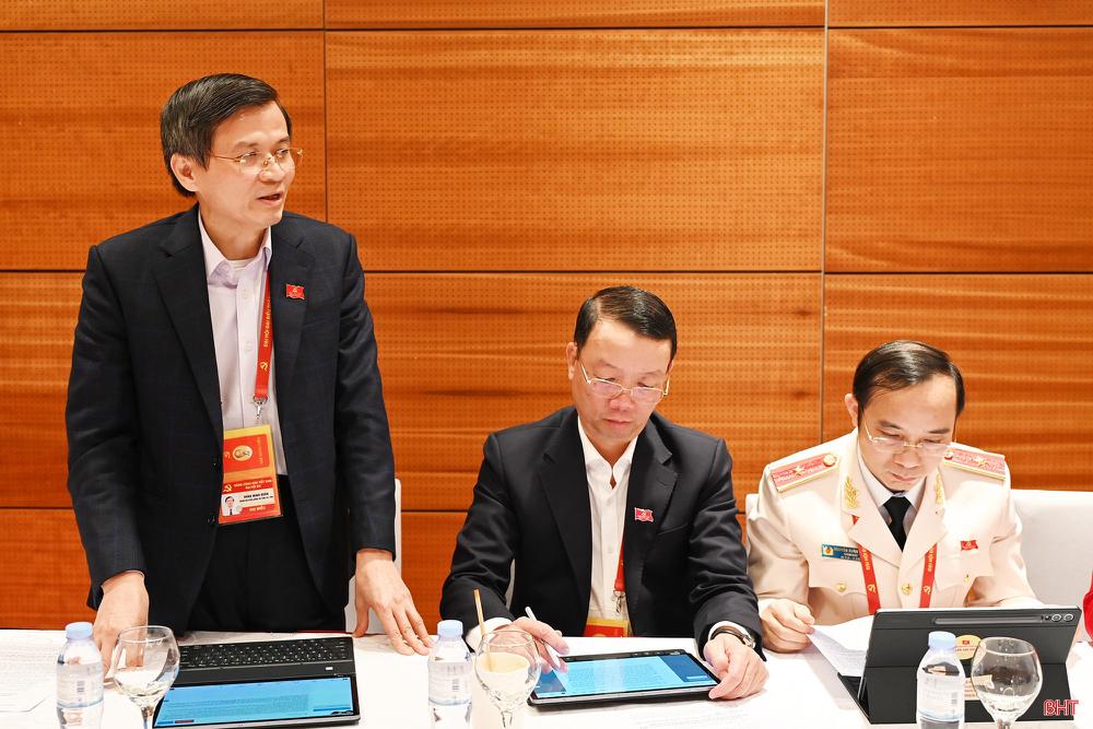Phó Trưởng ban Tổ chức Trung ương Hoàng Trung Dũng, Phó Chủ nhiệm Ủy ban Kiểm tra Trung ương Trần Tiến Hưng và các đại biểu Hà Tĩnh tham dự phiên thảo luận.