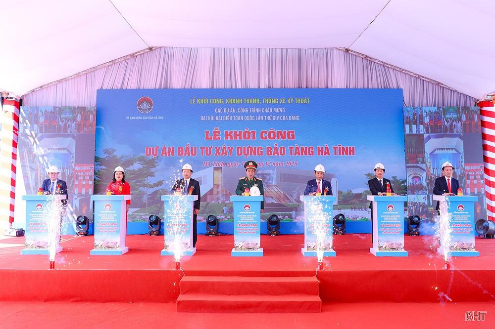 Thượng tướng Lê Đức Thái - Thứ trưởng Bộ Quốc phòng, Thứ trưởng Bộ VH-TT&DL Hoàng Đạo Cương, Bí thư Tỉnh ủy Nguyễn Duy Lâm thực hiện nghi thức khởi công Dự án đầu tư xây dựng Bảo tàng Hà Tĩnh.