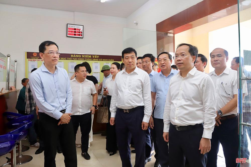 Bí thư Tỉnh ủy Nguyễn Duy Lâm và đoàn kiểm tra công tác chuẩn bị vận hành thử nghiệm đơn vị hành chính mới tại xã Nghi Xuân (tháng 6/2025).