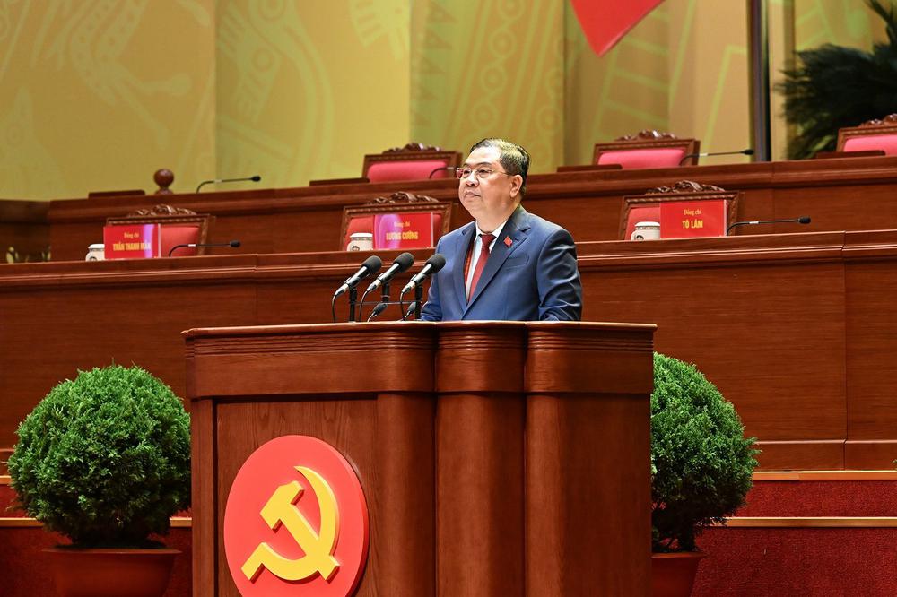 Đồng chí Lê Minh Hưng, Ủy viên Bộ Chính trị, Bí thư Trung ương Đảng, Trưởng ban Tổ chức Trung ương báo cáo tiếp thu ý kiến các đoàn đại biểu góp ý vào quy chế làm việc của Đại hội và toàn văn dự thảo Quy chế làm việc đã tiếp thu ý kiến các đoàn đại biểu.