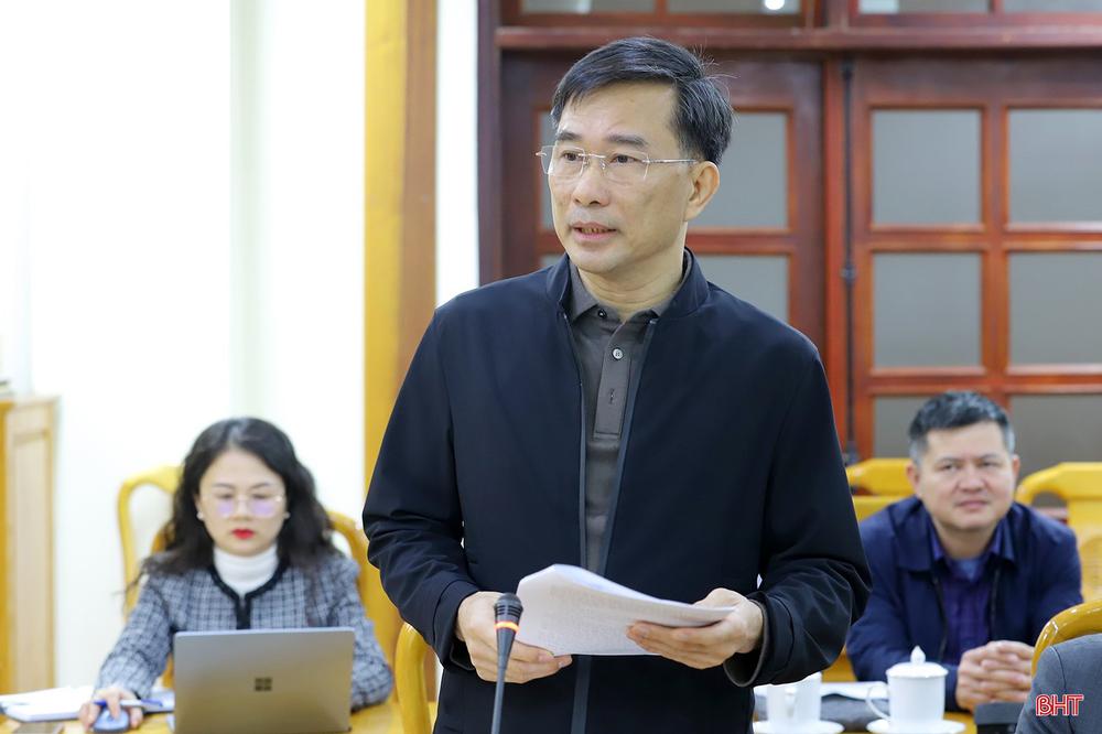 Giám đốc Sở VH-TT&DL Nguyễn Viết Trường báo cáo tiến độ triển khai các hoạt động tổ chức Lễ kỷ niệm 260 năm Ngày sinh Đại thi hào Nguyễn Du.