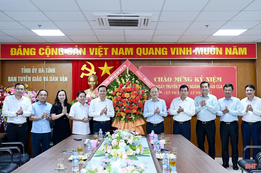 Đồng chí Nguyễn Hồng Lĩnh - Phó Bí thư Tỉnh ủy, Phó Chủ tịch Thường trực UBND tỉnh và các đồng chí trong đoàn chúc mừng Ban Tuyên giáo và Dân vận Tỉnh ủy, Ủy ban Kiểm tra Tỉnh ủy nhân ngày kỷ niệm.
