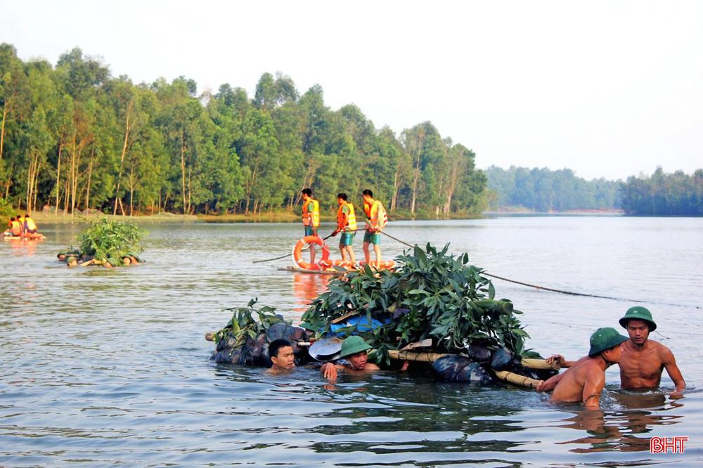 Các đơn vị bộ binh của Sư đoàn 968 (Quân khu 4) tổ chức hành quân vượt sông.