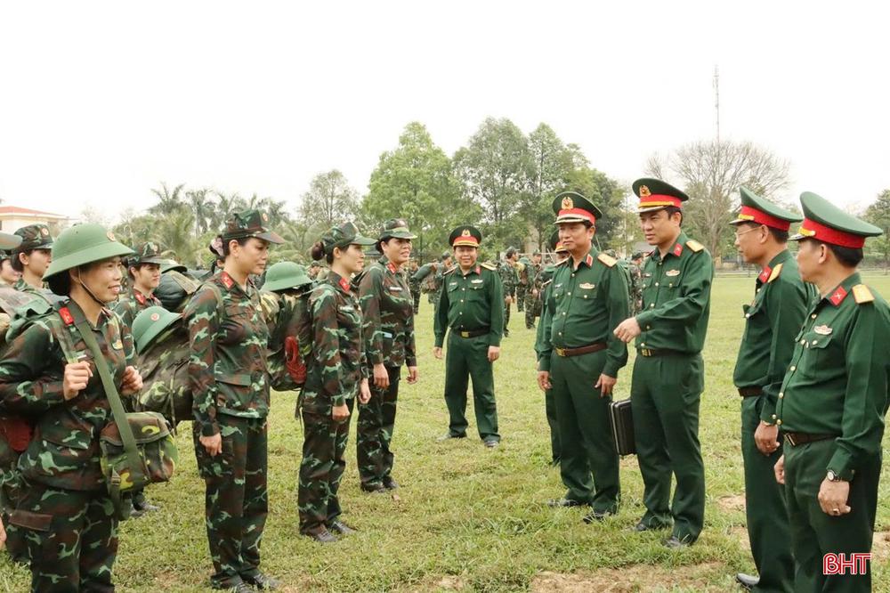 Trung tướng Hà Thọ Bình - Tư lệnh Quân khu động viên các lực lượng tham gia diễn tập KVPT tỉnh Hà Tĩnh năm 2023.