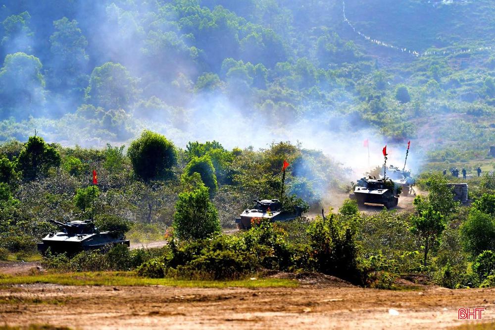Các phân đội xe tăng phối hợp dẫn dắt bộ binh phát triển chiến đấu trong diễn tập của Sư đoàn 968 (Quân khu 4) năm 2025.
