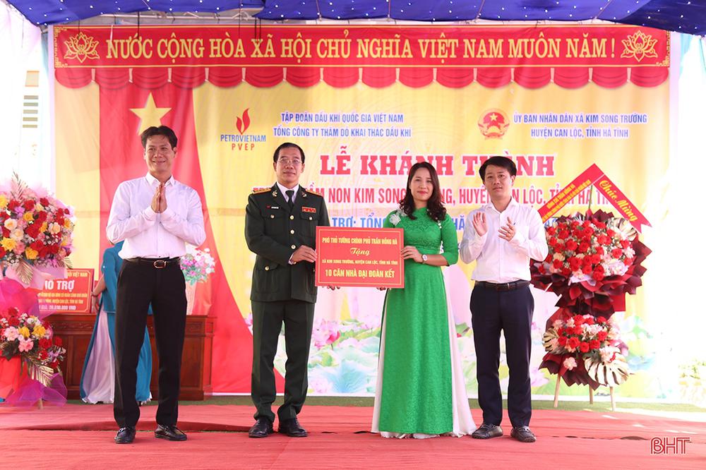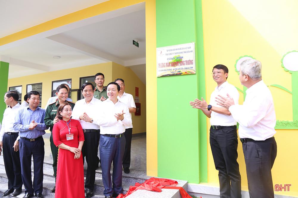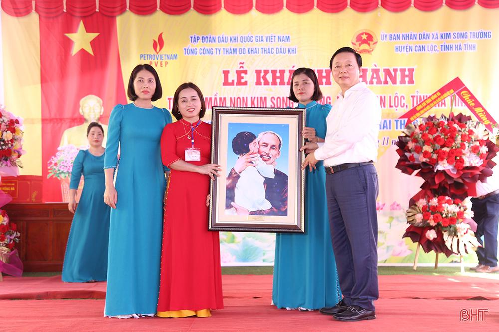 Cũng trong sáng 11/11, Phó Thủ tướng Chính phủ Trần Hồng Hà cùng đoàn công tác Trung ương đã tới dự lễ khánh thành Trường Mầm non Kim Song Trường ở xã Kim Song Trường, huyện Can Lộc.