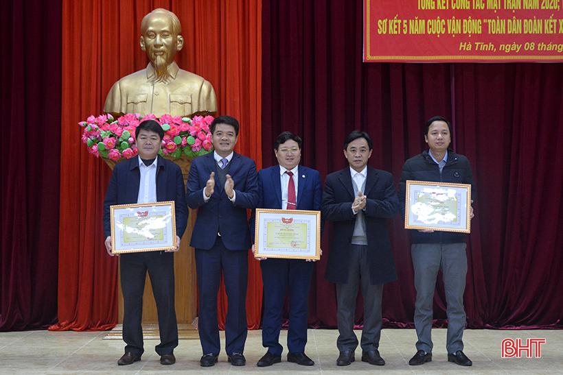 Dịp này, thừa ủy quyền của Chủ tịch Ủy ban Trung ương MTTQ Việt Nam, Phó Bí thư Thường trực Tỉnh ủy Trần Thế Dũng và Chủ tịch Ủy ban MTTQ Việt Nam tỉnh Hà Tĩnh Trần Nhật Tân trao bằng khen của Ủy ban Trung ương MTTQ Việt Nam cho 22 mặt trận tổ quốc các cấp và 15 cá nhân đã có thành tích xuất sắc trong công tác mặt trận năm 2020