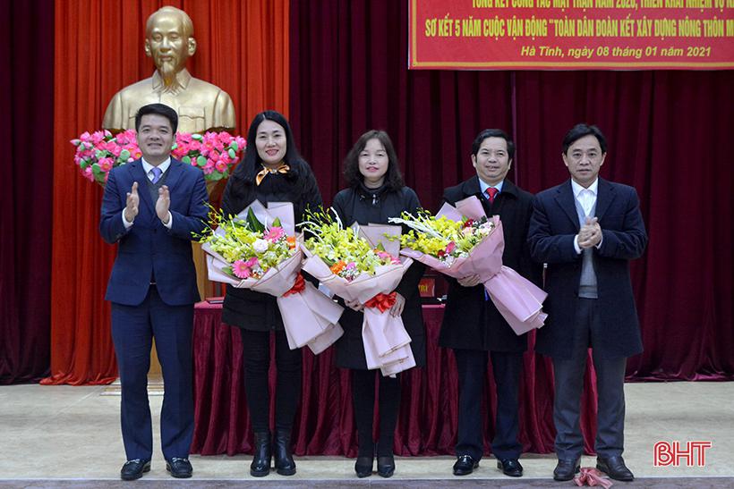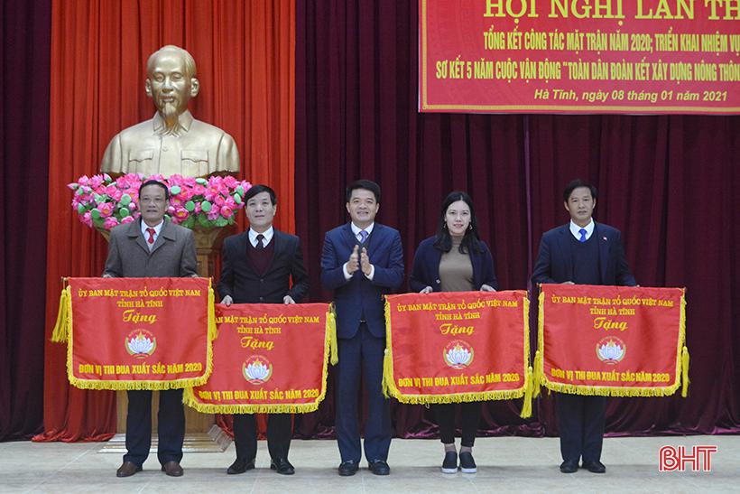 Chủ tịch Ủy ban MTTQ Việt Nam tỉnh Hà Tĩnh Trần Nhật Tân trao Cờ thi đua của Ủy ban MTTQ Việt Nam tỉnh Hà Tĩnh cho 4 đơn vị xuất sắc năm 2020.