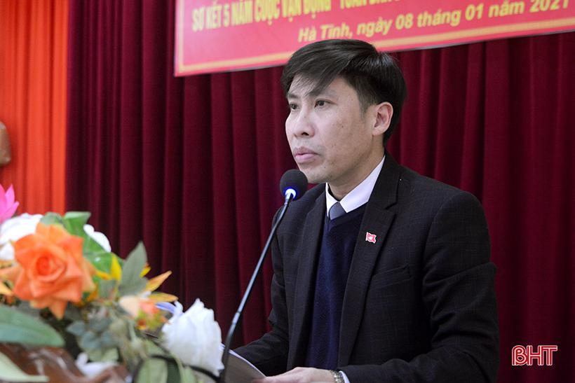 Phó Chủ tịch UB MTTQ Việt Nam tỉnh Hà Tĩnh Hoàng Anh Đức báo cáo tổng kết công tác mặt trận năm 2020; báo cáo sơ kết 5 năm Cuộc vận động “Toàn dân đoàn kết xây dựng Nông thôn mới, đô thị văn minh”.
