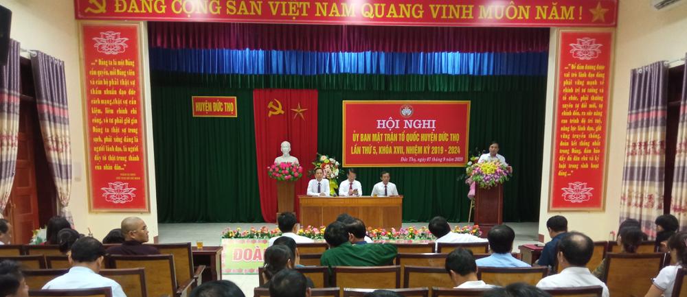 Chiều ngày 07/9/2020, Uỷ ban MTTQ huyện Đức Thọ tổ chức hội nghị lần thứ 5 để hiệp thương cử bổ sung Ủy viên Ủy ban MTTQ huyện và hiệp thương cử chức danh Chủ tịch Ủy ban MTTQ huyện khóa XVII, nhiệm kỳ 2019- 2024. Dự và chỉ đạo hội nghị có đồng chí Hà Văn Hùng, Uỷ viên Ban Thường vụ Tỉnh uỷ, Chủ tịch Uỷ ban MTTQ tỉnh