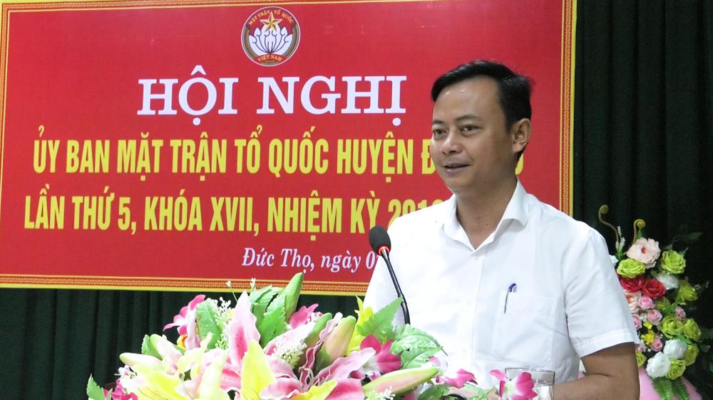 Hội nghị đã nghe thông báo về việc thôi chức vụ Chủ tịch Ủy ban MTTQ huyện đối với đồng chí Bùi Lê Văn do được điều động, phân công nhiệm vụ mới là Trưởng ban Tuyên giáo Huyện ủy và thực hiện quy trình hiệp thương bổ sung Ủy viên Ủy ban MTTQ huyện, hiệp thương cử chức danh Chủ tịch Ủy ban MTTQ huyện đối với đồng chí Đặng Giang Trung - Phó Bí thư Huyện ủy. Theo đó Đức Thọ là huyện đầu tiên thực hiện mô hình Phó Bí thư - Chủ tịch Ủy ban MTTQ huyện.