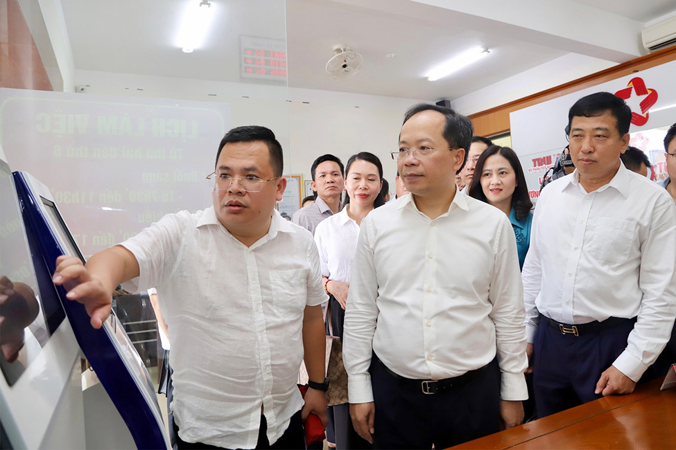 Bí thư Tỉnh ủy Hà Tĩnh Nguyễn Duy Lâm kiểm tra tại Trung tâm phục vụ hành chính công xã Nghi Xuân_Nguồn: baohatinh.vn